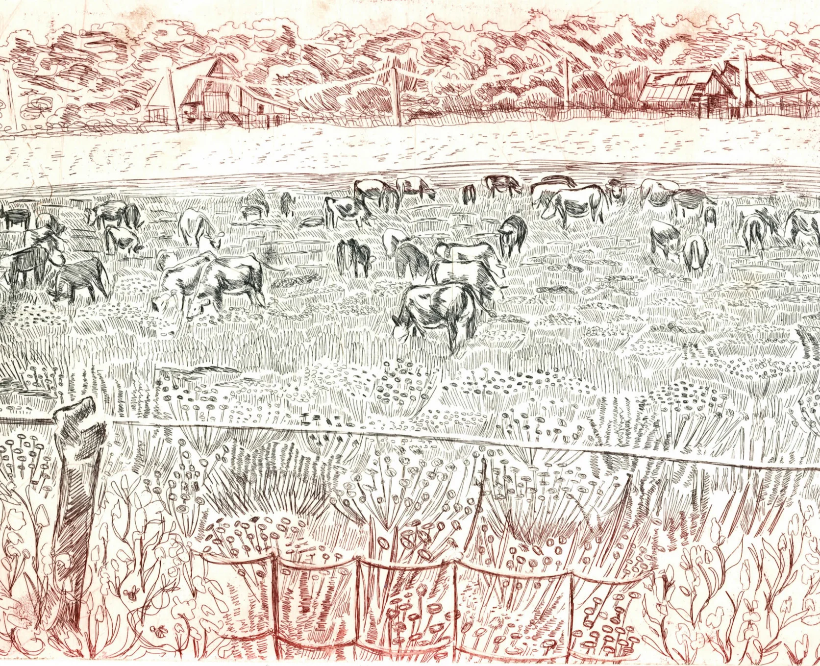 I purposely sketched this in reverse, knowing that it would print the mirror of this image. Thinking ahead always.